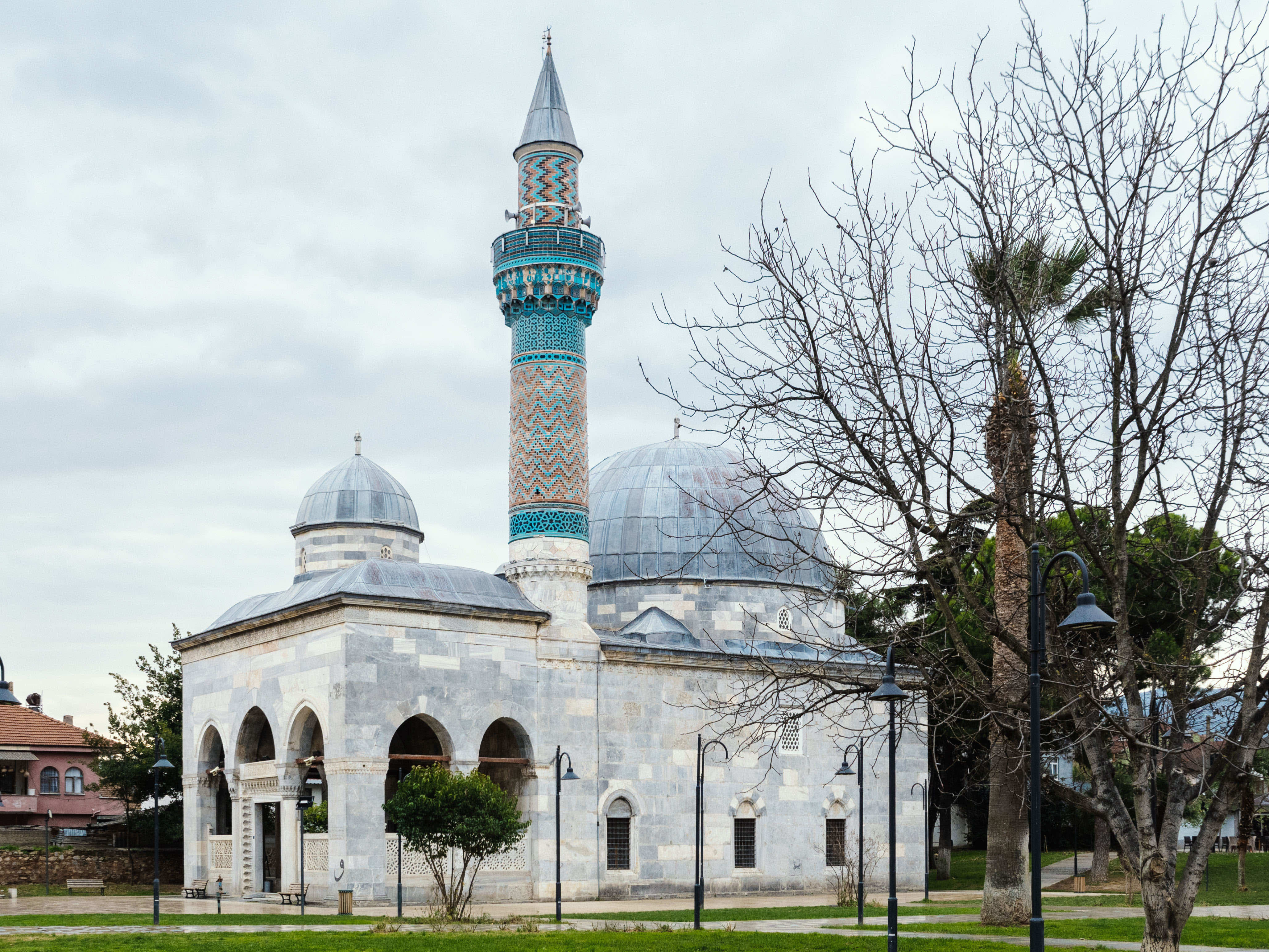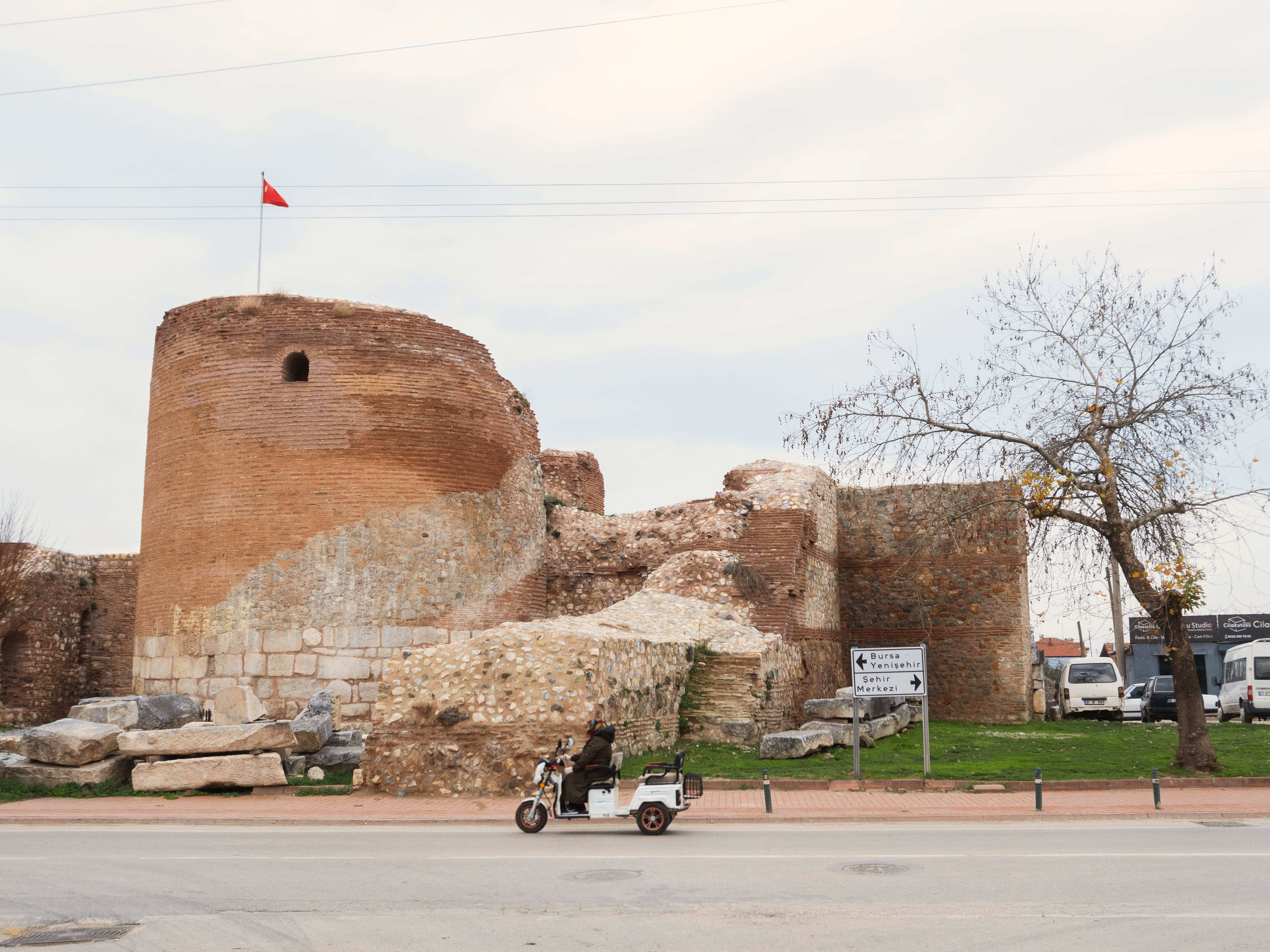 旅途后半段我们前往伊兹尼克,也就是古代的尼西亚。尼西亚是基督教历史上最重要的转折点之一。公元 325 年的第一次尼西亚大会在此确立了基本基督教的基本教义,而公元 787 年的第二次尼西亚大会也对基督教(特别是东方地区基督教)的历史影响深远。如今第一次是大会的会址已沉入湖底,直到 2014 年才重新被发现,从湖底浮现成为当年安卡尼西亚城墙保存完好,全长 5 公里,呈五边形环绕古城。东门名为光明之门,恰似「朝阳门」的意蕴,北门通向伊斯坦布尔,似乎可以译为「望京门」;西门面朝湖,可谓「望湖门」;湖水南门则称为新城门。这座城市在罗马时期是基督教重镇,在奥斯曼时期又称为瓷器业的中心,土耳其建筑上那些标志性绿松石色瓷砖正源自伊兹尼克的御窑厂。